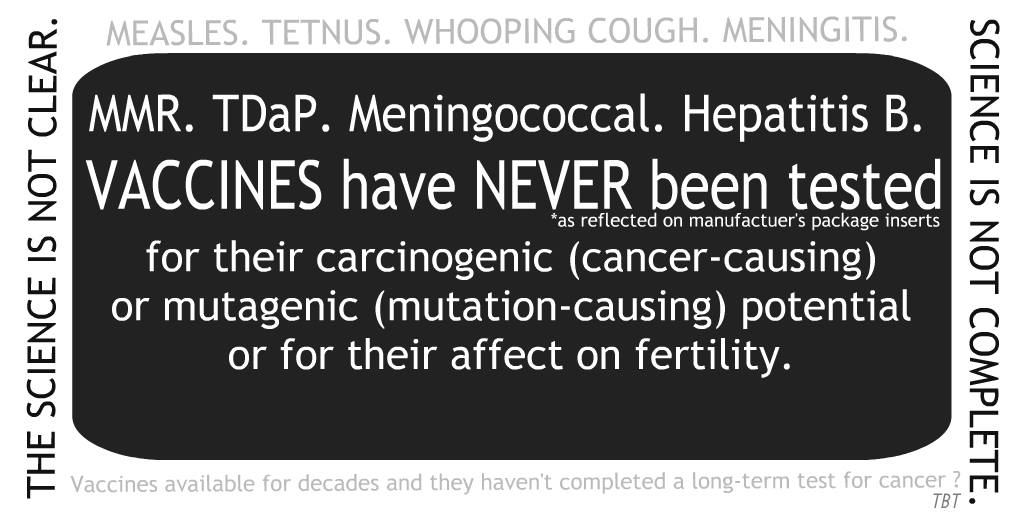 “This vaccine has not been been evaluated for its carcinogenic ,(cancer causing), mutagenic, (ability to mutate genes) potentials, or for impairment in fertility.