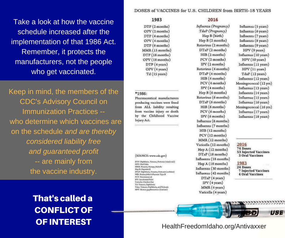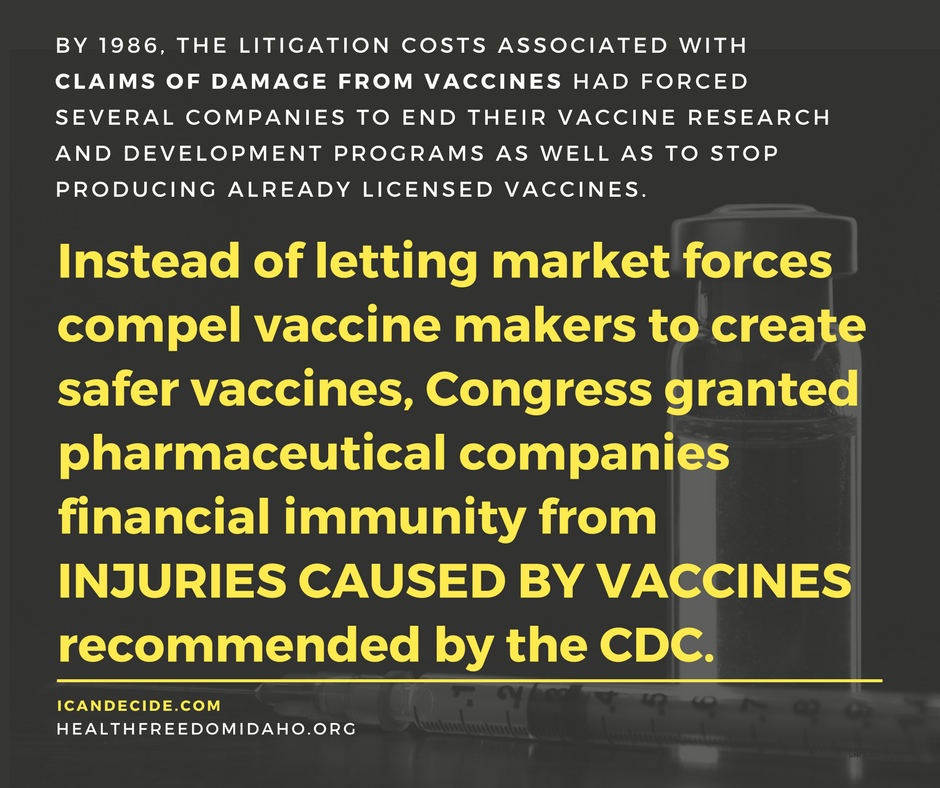 Who then will you turn to? Your legislators who get campaign donations from pharmaceutical companies? The CDC that has former pharma executives sitting on the board? Who will you turn to if you ever want to say no? There will be no one.