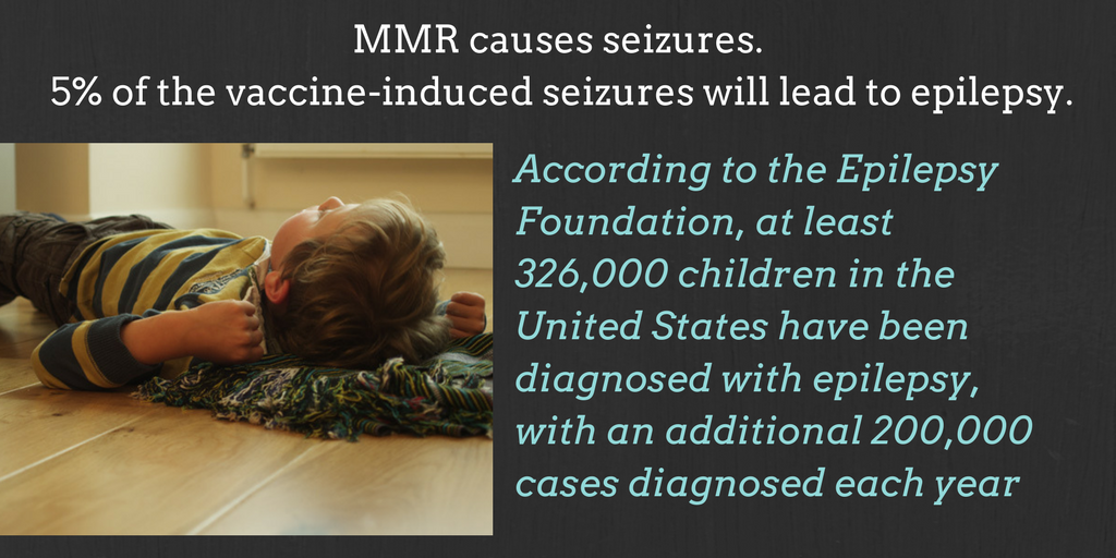 Every year about 5,700 US children suffer seizures from the measles, mumps and rubella vaccines. Dr Bob Sears points out that if the risk of seizures from MMR vaccine is as high as 1 in 500, and the risk of catching measles is almost zero, what is that going to do to vaccine compliance? The rates of seizure disorders in children have skyrocketed in recent years, with one in 20 children under the age of five now suffering from epilepsy. Many parents know vaccines are to blame, as their children suffered seizures shortly after vaccination. Government officials say it’s mere coincidence. [1] Epilepsy is the formal medical diagnosis given to patients who suffer multiple seizures.