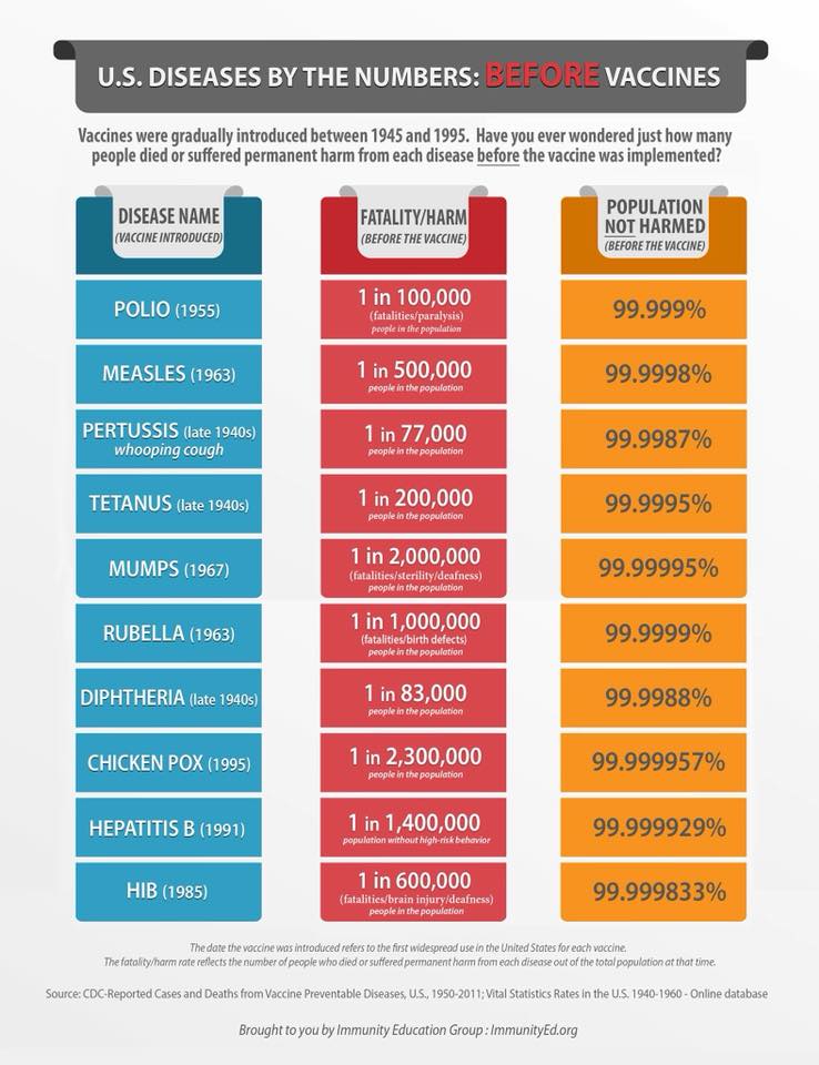 Did you know? If not, you never had true informed consent prior to vaccinating your children. Sadly, policies are being made every day with the false assumption that vaccines are the magic that they claim to be and are completely safe. 99.9% of people who got the diseases we vaccinate our children against were not harmed by the illness.