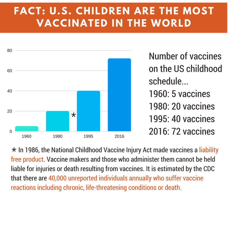 U.S. vaccine market was valued at USD 12.8 billion in 2013 and is expected to grow at a CAGR of 4.3% from 2014 to 2020, to reach an estimated value of USD 17.3 billion in 2020. In the 1960s, the U.S. vaccine schedule in the United States called for 5 total vaccine doses for childhood, today it’s 72 doses (that’s not a typo)—a fifteen-fold increase in the number of vaccine doses given to children.
