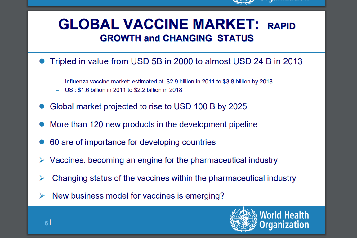 What if I also told you that the global market for vaccines is expected to be worth $100 billion in 2025, up from $170 million in the early 1980s. Let me say that again. In the 1980s, with no childhood epidemics to speak of, the market for vaccinations was worth $170 million. Fast forward, and the market for vaccines has grown 350-times larger!