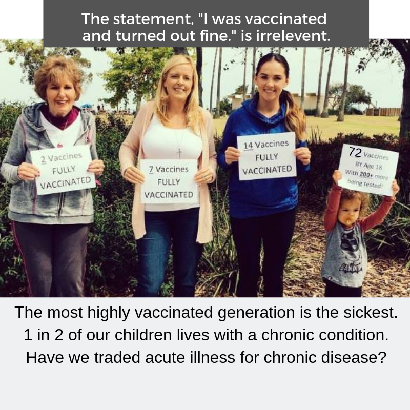 Prior to educating myself about vaccines, I proceeded with the full vaccination schedule until my daughter was 18 months old. She was fine until one year of age. After this point, she hardly progressed in her speech. She was finally diagnosed with mild autism at 3 years old. I believe her brain injury to be caused in part by vaccines. I don’t believe vaccines by themselves cause autism – it has multifactorial causes – but in vulnerable children, vaccines can be the straw that broke the camel’s back. They can do damage in vulnerable populations.